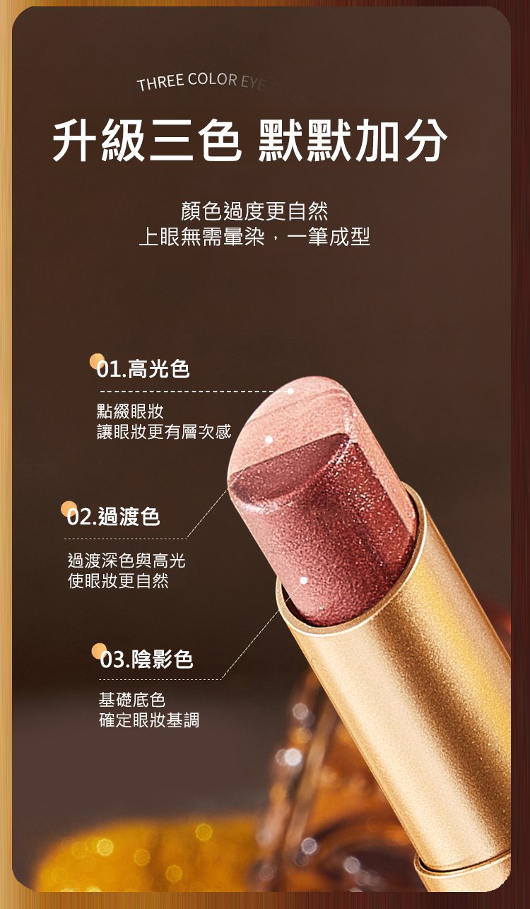 15分鐘前【限時特惠70%!買1送1,支持貨到付款】手殘黨救星,一抹成形!「三色眼影棒」高光+陰影+過渡色//台灣獨家熱賣 - 【賠錢特惠 買二送二】-NT$ 1,099