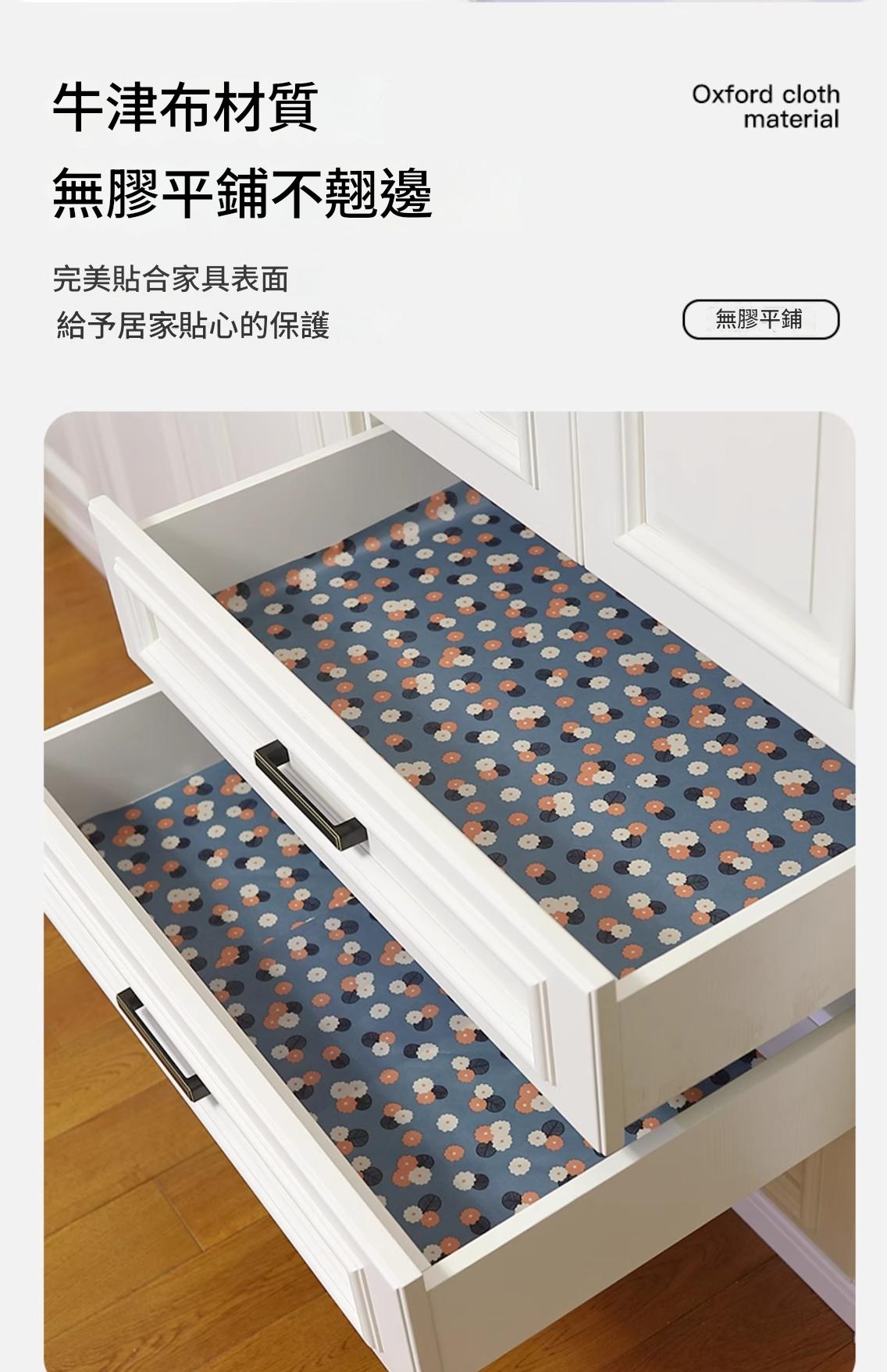 7分鐘前抽屜墊衣櫃墊布家用廚房鋪紙櫥櫃墊紙防水防潮櫃子鞋櫃加厚防潮墊 - 5入組 NT$599【最多客戶選擇】