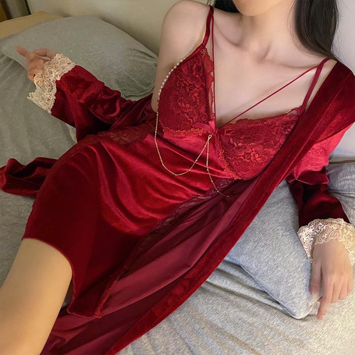 5分鐘前【輕奢高定版蕾絲睡裙】蕾絲深V純欲風!若隱若現,撥動男人的心弦!冰絲面料、自帶胸墊! - 【店長推薦 】三入組-NT$1598