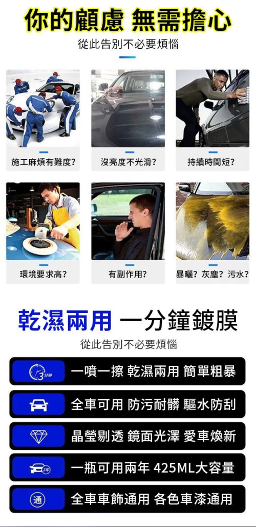 11分鐘前速效汽車鍍膜劑,去污+鍍膜,3分鐘養護漆面光亮如新,所有車色可用!鍍膜防護一瓶搞定!限時折扣 ! - 【特惠三入組】NT$998