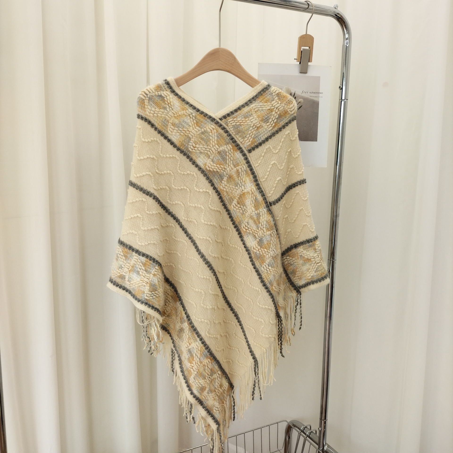 25分鐘前流蘇套頭針織披肩,民族風披肩波浪彩色百搭款 - 最划算!【多款式一起入!】3入組-NT$1590