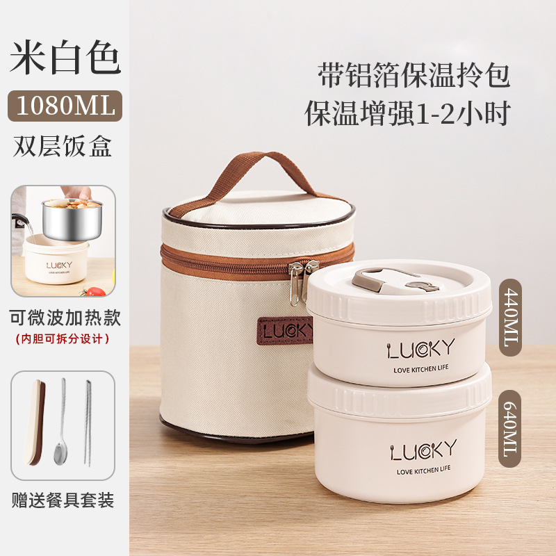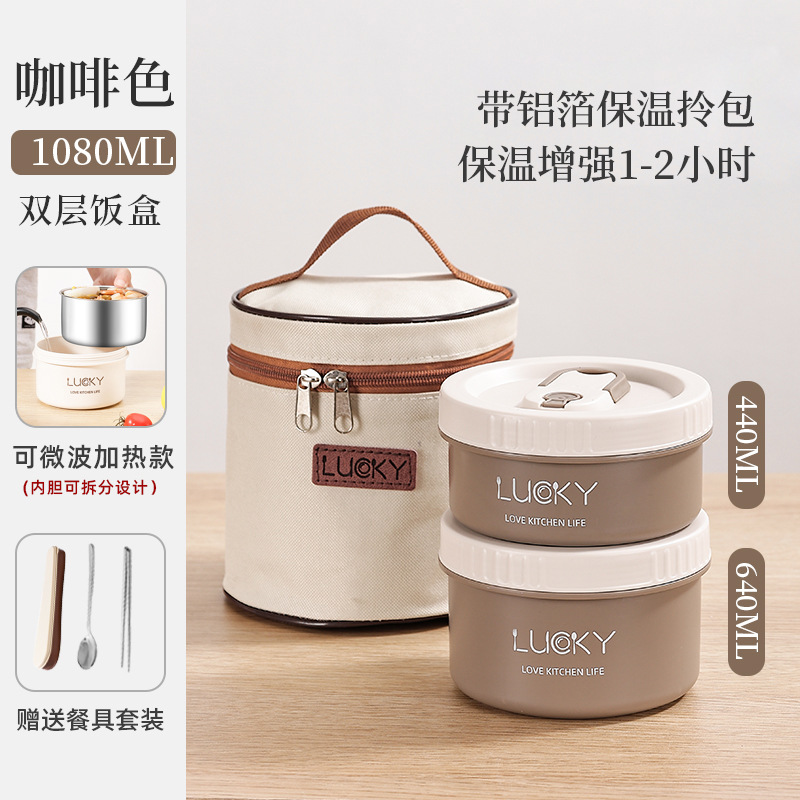 2分鐘前日式便攜保溫飯盒送餐具套餐 - 不可微波【兩個裝】+勺筷+保溫提包NT$799