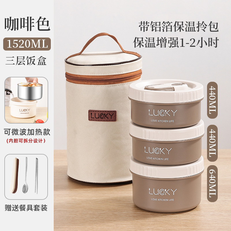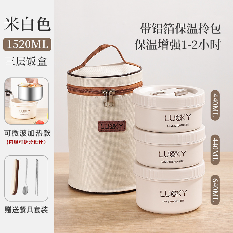 5分鐘前日式便攜保溫飯盒送餐具套餐 - 不可微波【三個裝】+勺筷+保溫提包NT$1060