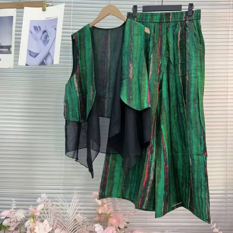 20分鐘前居然這麼顯瘦!色彩感十足的氣質馬甲套裝也太美了吧,假兩件馬甲搭配條紋寬褲,妥妥的慵懶感~ - 【限時下殺】馬甲+褲子一套 僅需 NT$998