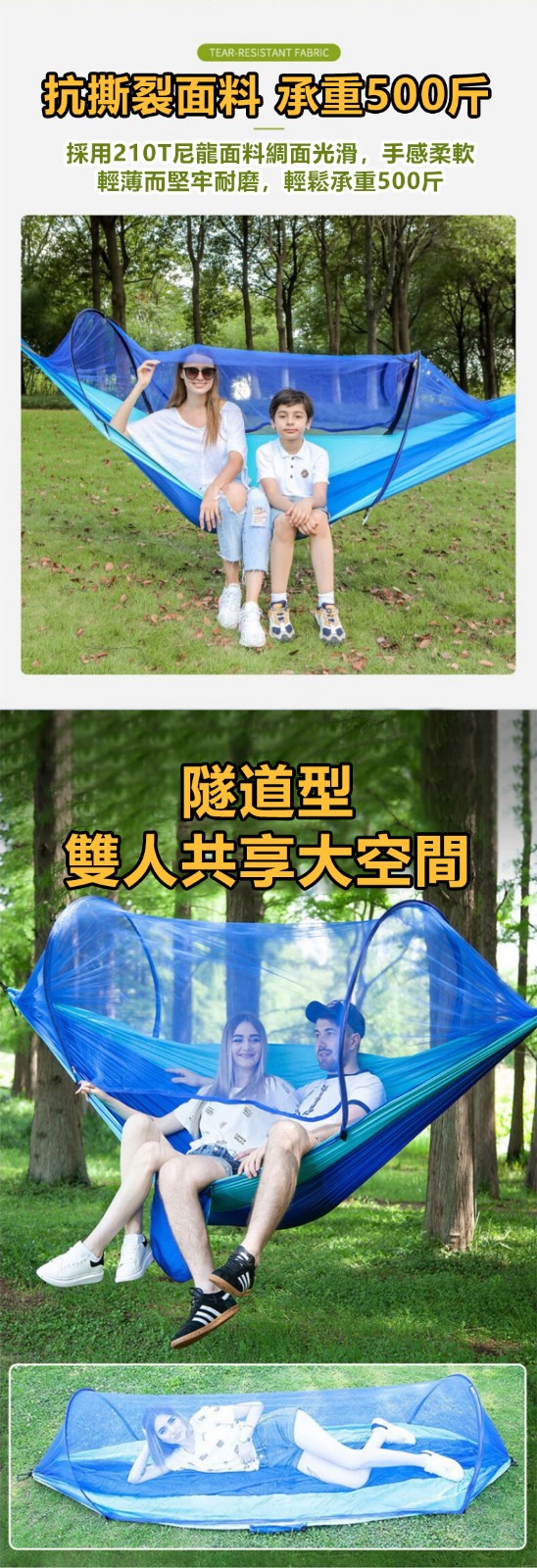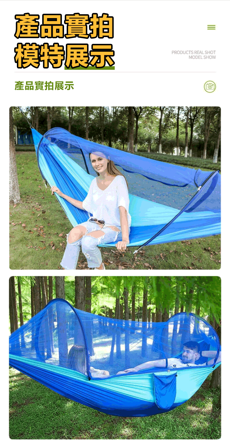 4分鐘前全自動速開戶外帶蚊帳吊床 - 【限時下殺】承重700公斤 速開蚊帳吊床【帶蚊帳 三米綁繩 8號扣】/2入組NT$2098