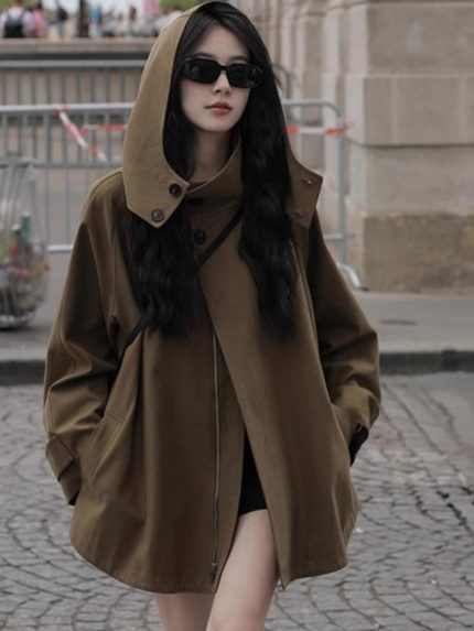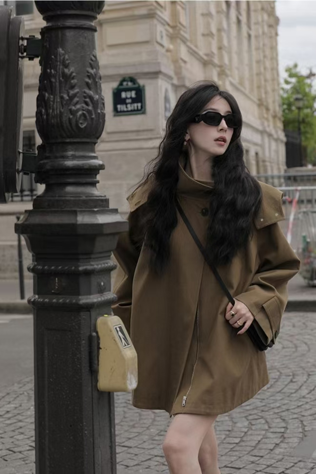 25分鐘前【現貨爆款】秋冬新款 斗篷風衣外套 美拉德英倫風 高品質連帽工裝 - 優惠價一入組NT$1398