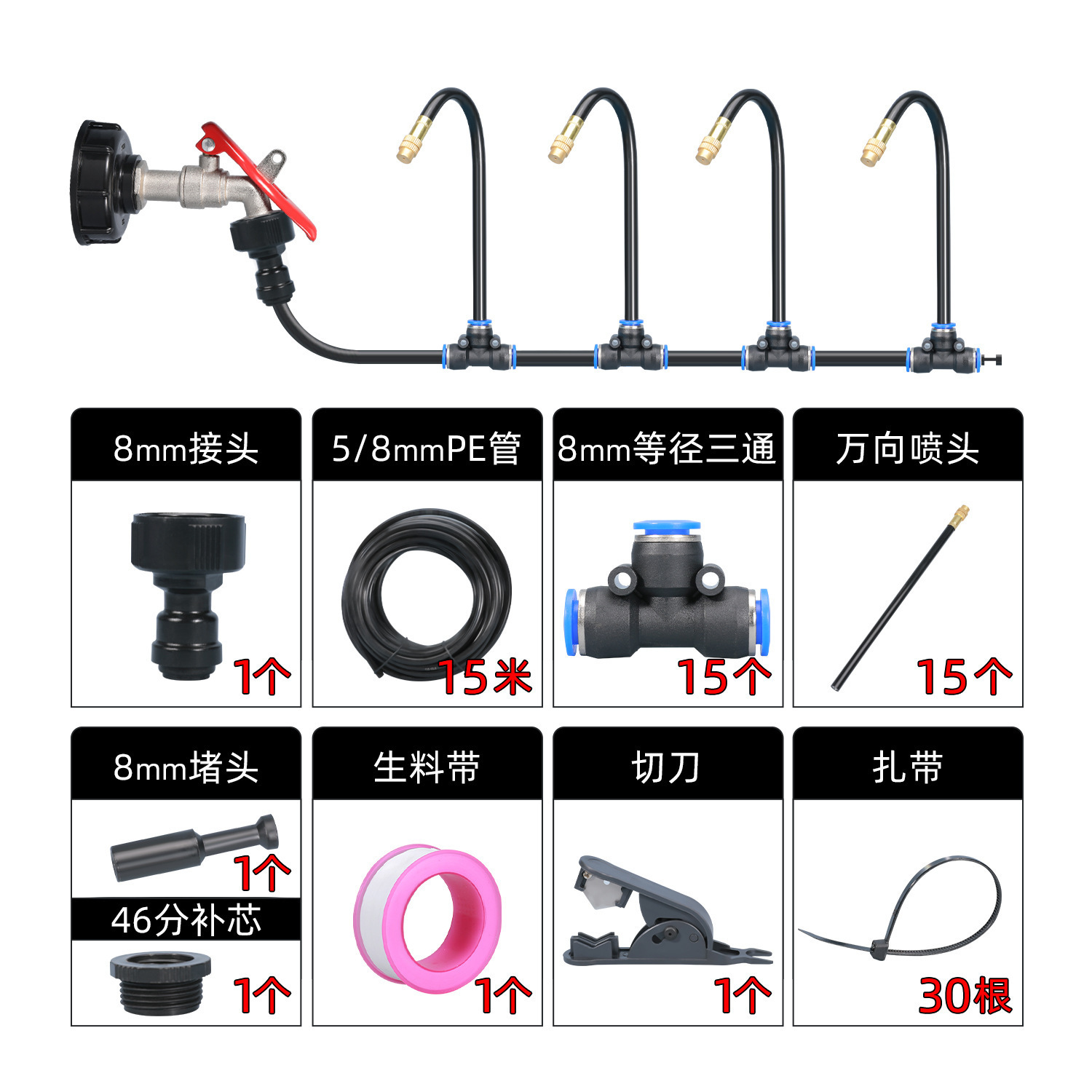 4分鐘前萬向噴頭一體自動澆花器 - 霧化套裝~15米~帶釘【一入組】NT1388
