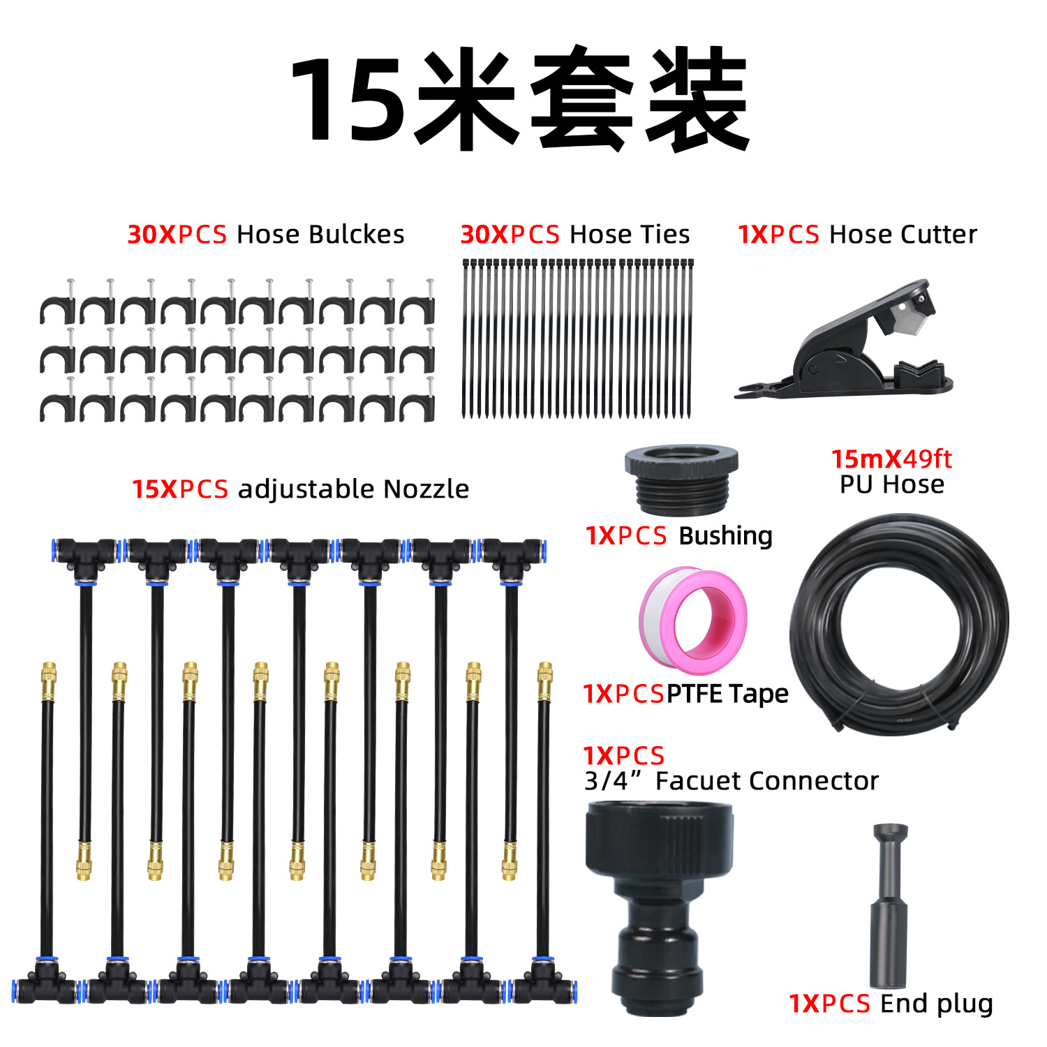 半小時前萬向噴頭一體自動澆花器 - 霧化套裝~15米~帶釘【一入組】NT1388