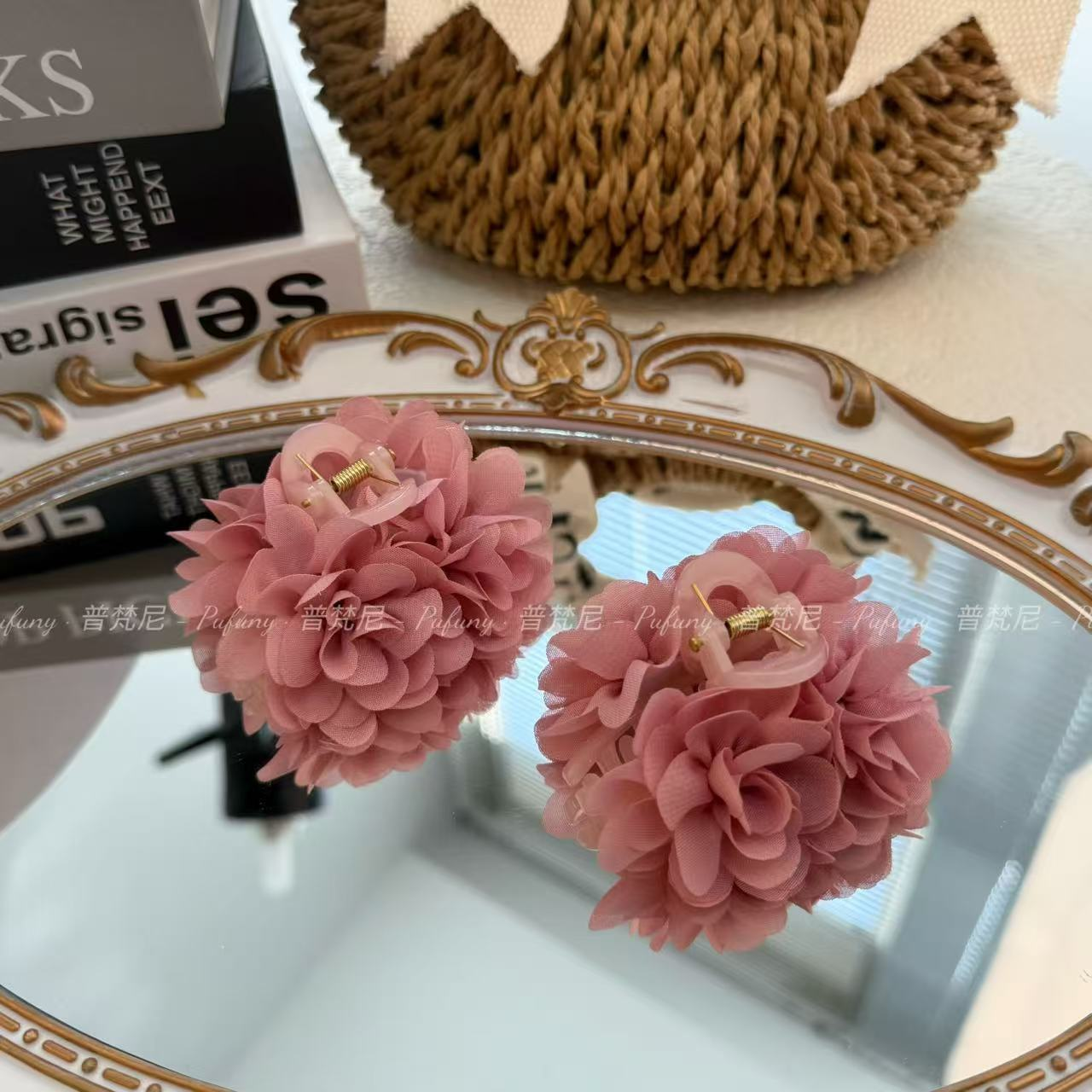 半小時前玫瑰花抓夾盤發頭花劉海側邊夾7Cm法式慵懶感半紮髮卡 - 【盤發頭花慵懶感半紮髮卡 一對裝】3入組-NT$1180