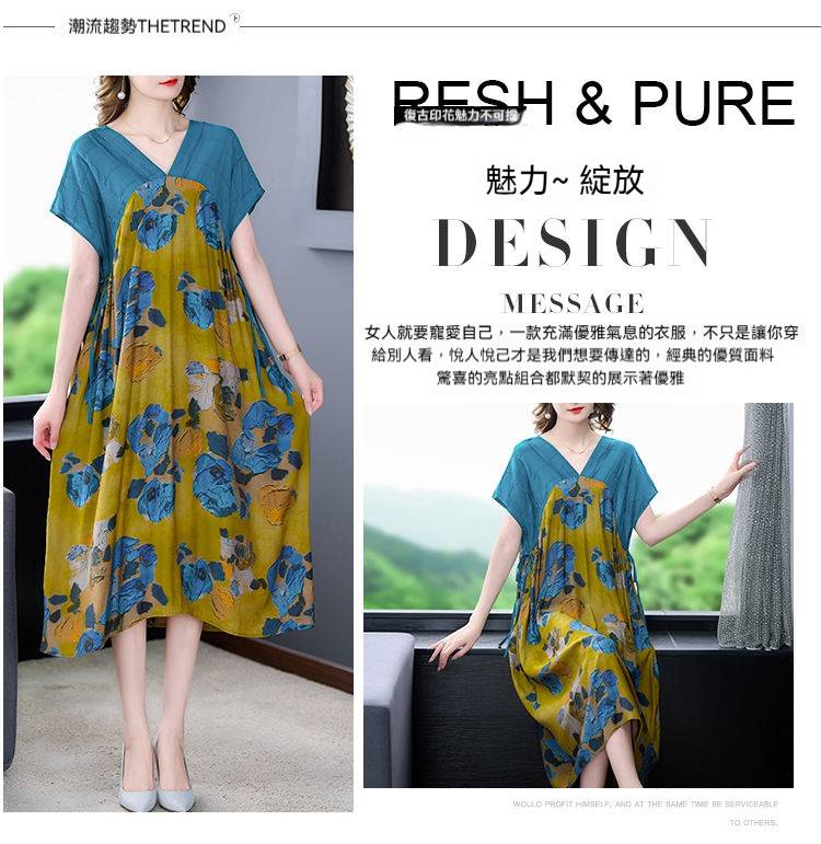 7分鐘前網紅爆款夏季新款寬鬆復古印花高端優雅連衣裙 - 【團購優惠】任選4件 僅需NT$1598
