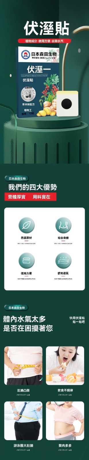 2分鐘前日本森田生物伏濕貼艾草貼肚臍貼艾灸貼溫灸貼穴點貼熱敷貼 - 🔥98%客戶選擇【排濕消肚瘦腿 八入組】 僅需NT$1298 均價162.25