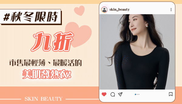 25分鐘前滋養肌膚+保暖二合一 輕薄保暖,越穿肌膚越白嫩 日本銷售排名第一【美しい肌】新秋冬美肌發熱衣 - 「新品嘗鮮八折優惠」任選1套NT$888