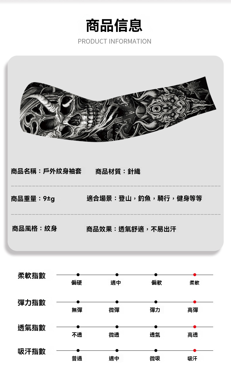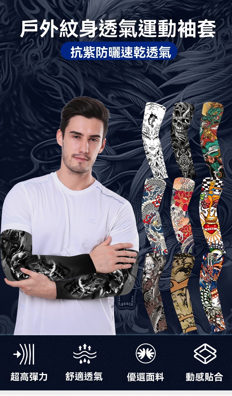 11分鐘前夏季騎行防曬紋身袖套仿真刺青速幹護臂戶外運動遮陽透氣高彈冰袖 - 體驗!!【買二送二】4入組-NT$980
