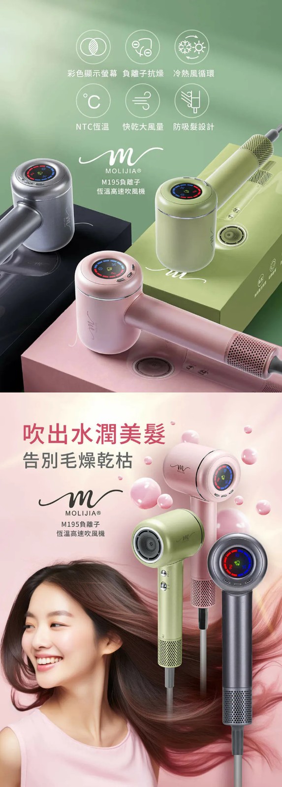 7分鐘前M195 負離子恆溫高速吹風機 乾髮護髮,一次搞定 - 優惠價一入組NT$1398