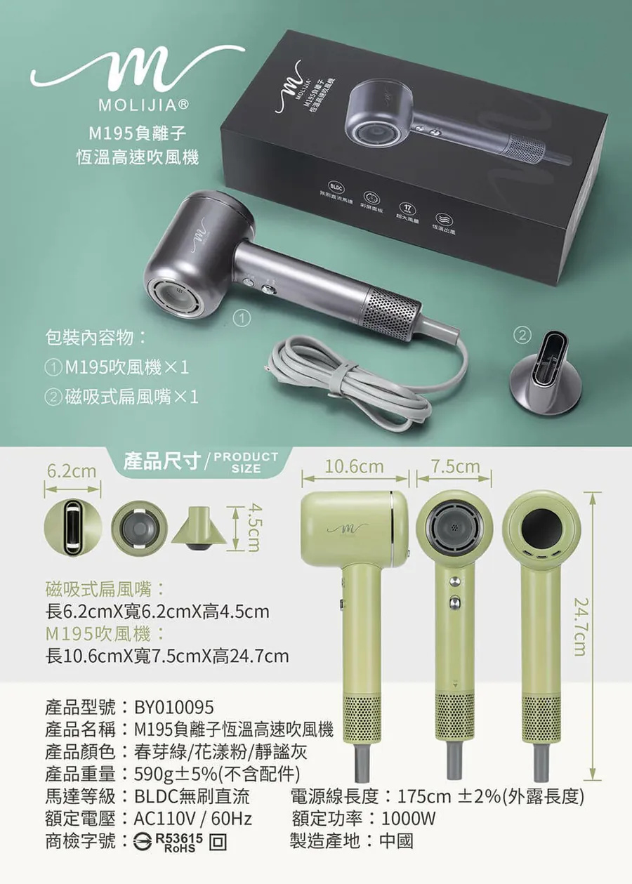 5分鐘前M195 負離子恆溫高速吹風機 乾髮護髮,一次搞定 - 優惠價二入組NT$1998