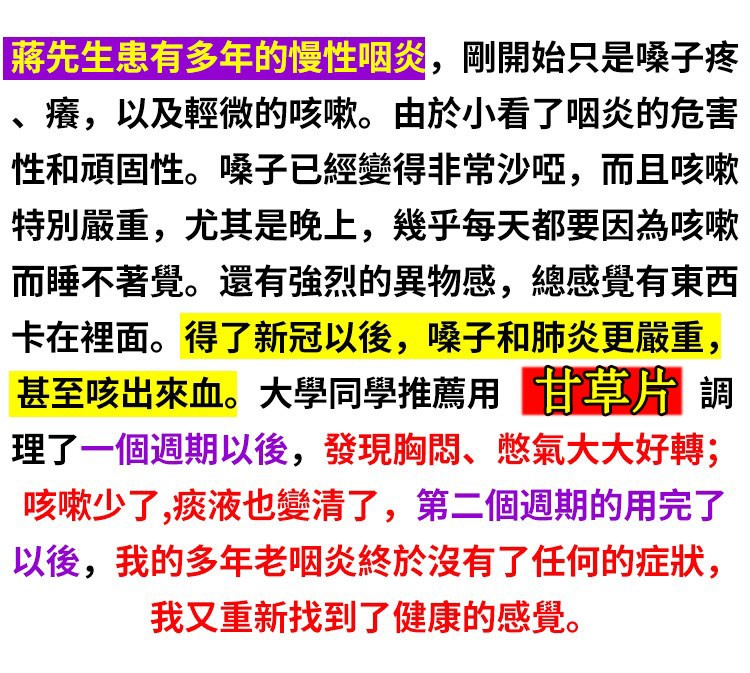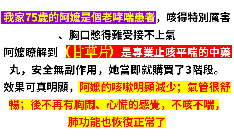 半小時前【權威醫師推薦 】咳嗽氣喘止不住,快用甘草片! ! 天然植物草本! 修復肺部損傷,保護肺部健康,每次一顆,化痰止咳,清理肺部有害垃圾! 三十年的老肺病全好了!免疫力也好起來了!! - 一個療程【化痰止咳,清肺毒】3入組-NT$998