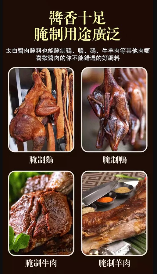 7分鐘前【一袋做6斤】太白醬肉醃料廚師兄川味風乾臘肉料300g/袋醬排骨猪肝 - 新品嘗鮮【太白醬肉醃料 300g/袋】3入組NT$980